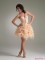 Eye-catching Halter Yellow Beading Rhinestone Embellished Ruched Short Prom Dresses/Cocktail Dresses Sale CD-4188