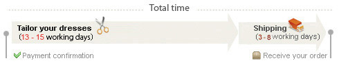 Total Shipping Time is based on the time it will take to tailor your dresses + the time taken for the finished dress to be shipped to you.
