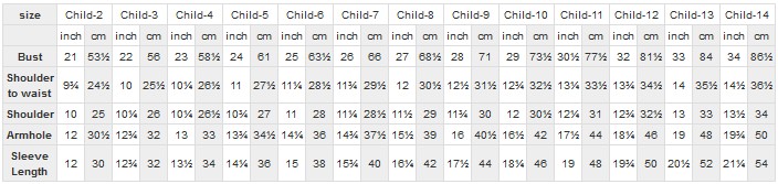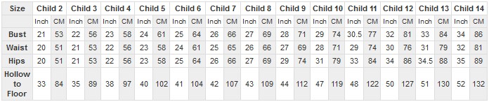 Junior Bridesmaid Dresses Size Chart