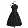 A-Line Halter Knee-Length Black Organza Criss-Cross Straps Homecoming Dress with Ruched