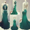 Mermaid Halter Sweep Train Green Criss-Cross Straps Chiffon Beaded Homecoming Dress